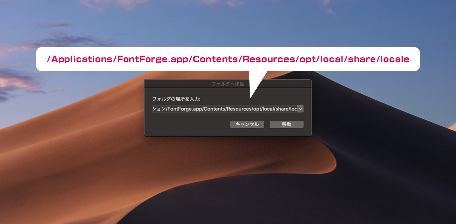 一旦、FontForgeを終了してから、Finderの「移動」>「フォルダへ移動…」で次のディレクトを開いてみてください。