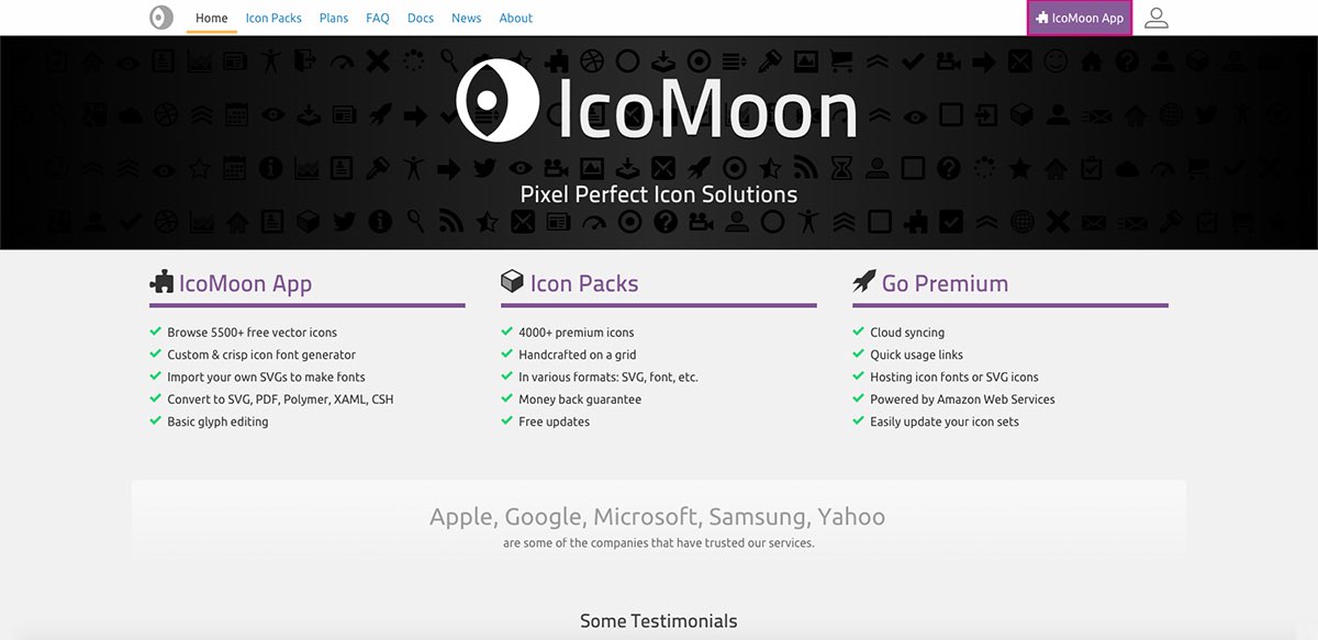 次は、IcoMoonにアクセスしてAppプロジェクトを作成します。サイトにアクセスしてください。