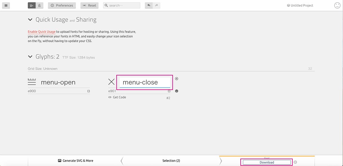 コーディングしているhtmlにアイコンフォントとして組み込む方法については、ダウンロードファイルの中に含まれるサンプルcssなどを参考にしてみてください。